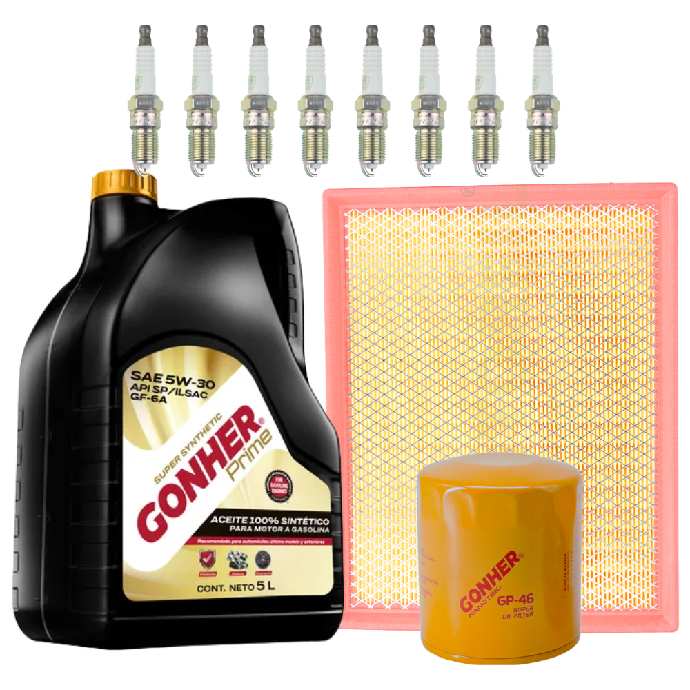 FILTRO DE ACEITE GP-46 FILTRO AIRE AF-GM8755 FILTRO GASOLINA NO LLEVA 8 BUJÍAS NGK PLATINO TR4GP 1 GARRAFA GONHER 5W30 SINTETICO API SP - 1033904